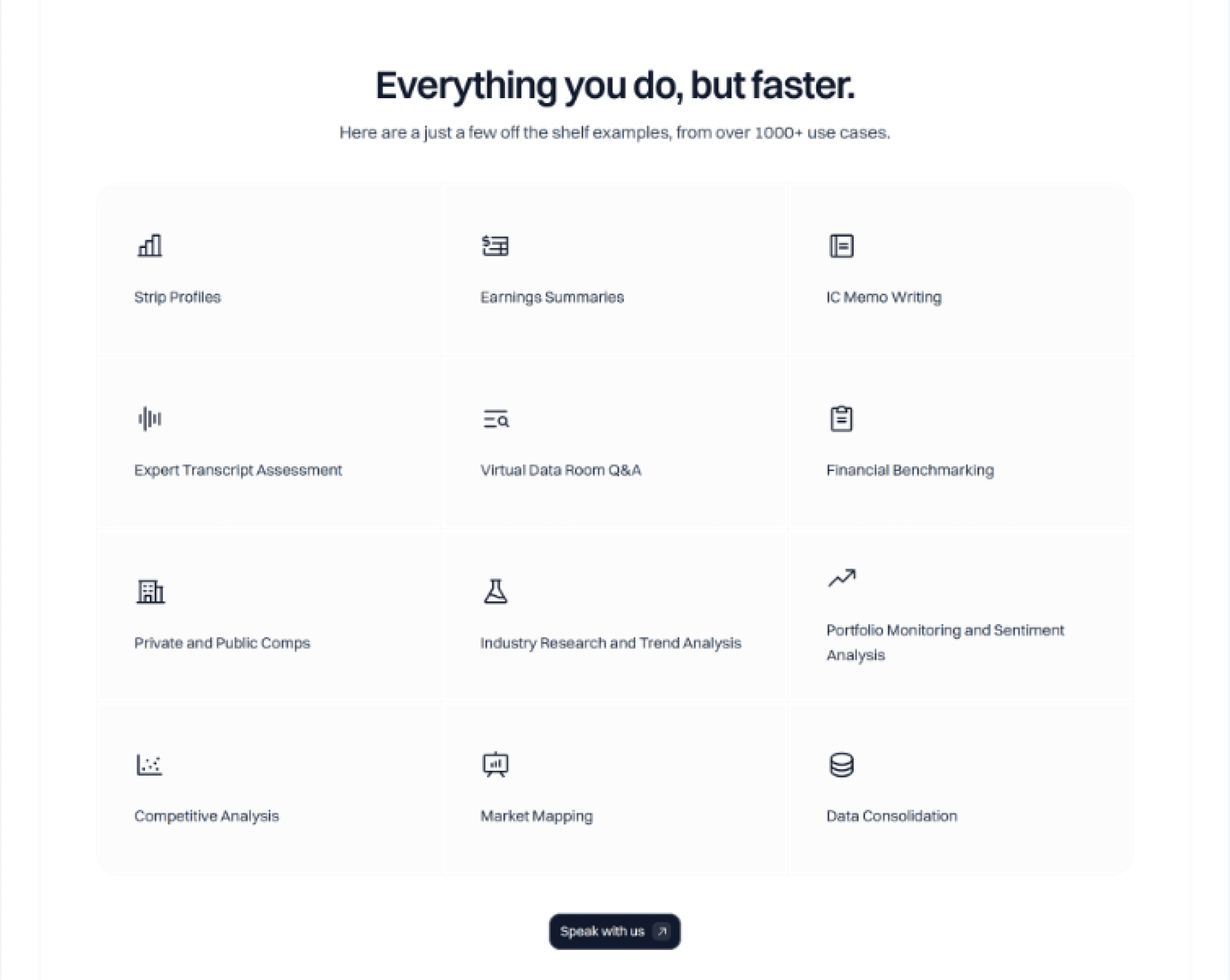 The product’s core AI capabilities, the main highlight, were present within the features section rather than showcased separately.